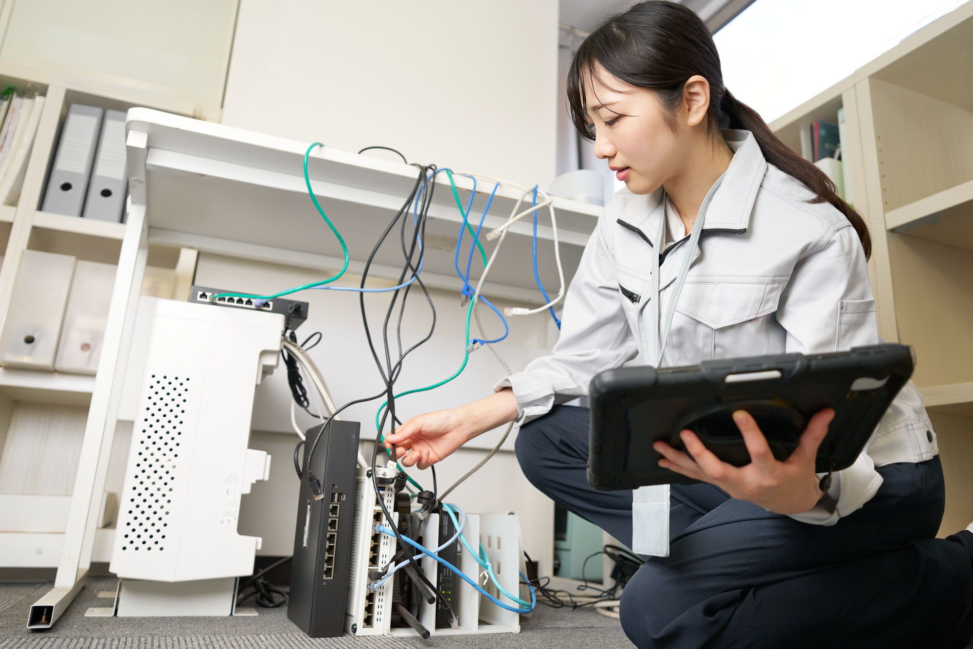 LAN配線や防犯カメラ、インターホン、各種通信設備など、建物に欠かせない低電圧設備の施工を幅広く対応。